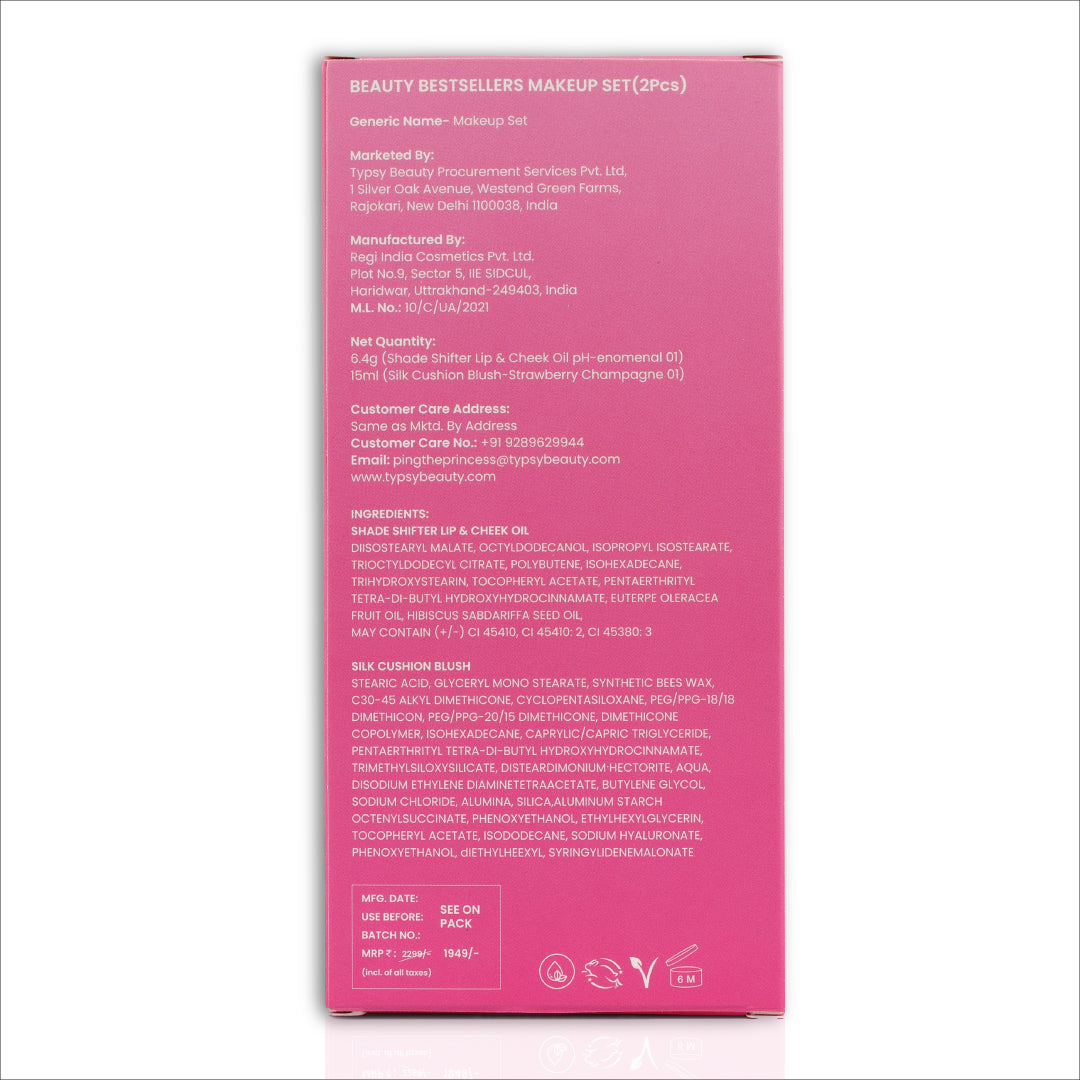 Typsy Beauty’s Beauty Bestsellers set, includes our trendsetting pH-activated Lip & Cheek oil along with our iconic Silk Cushion Blush-liter wand. Look flawless with our most iconic products in a single set. Save more when you buy sets.