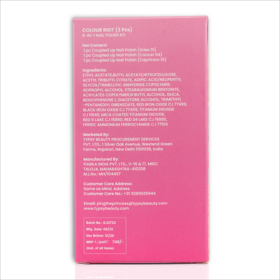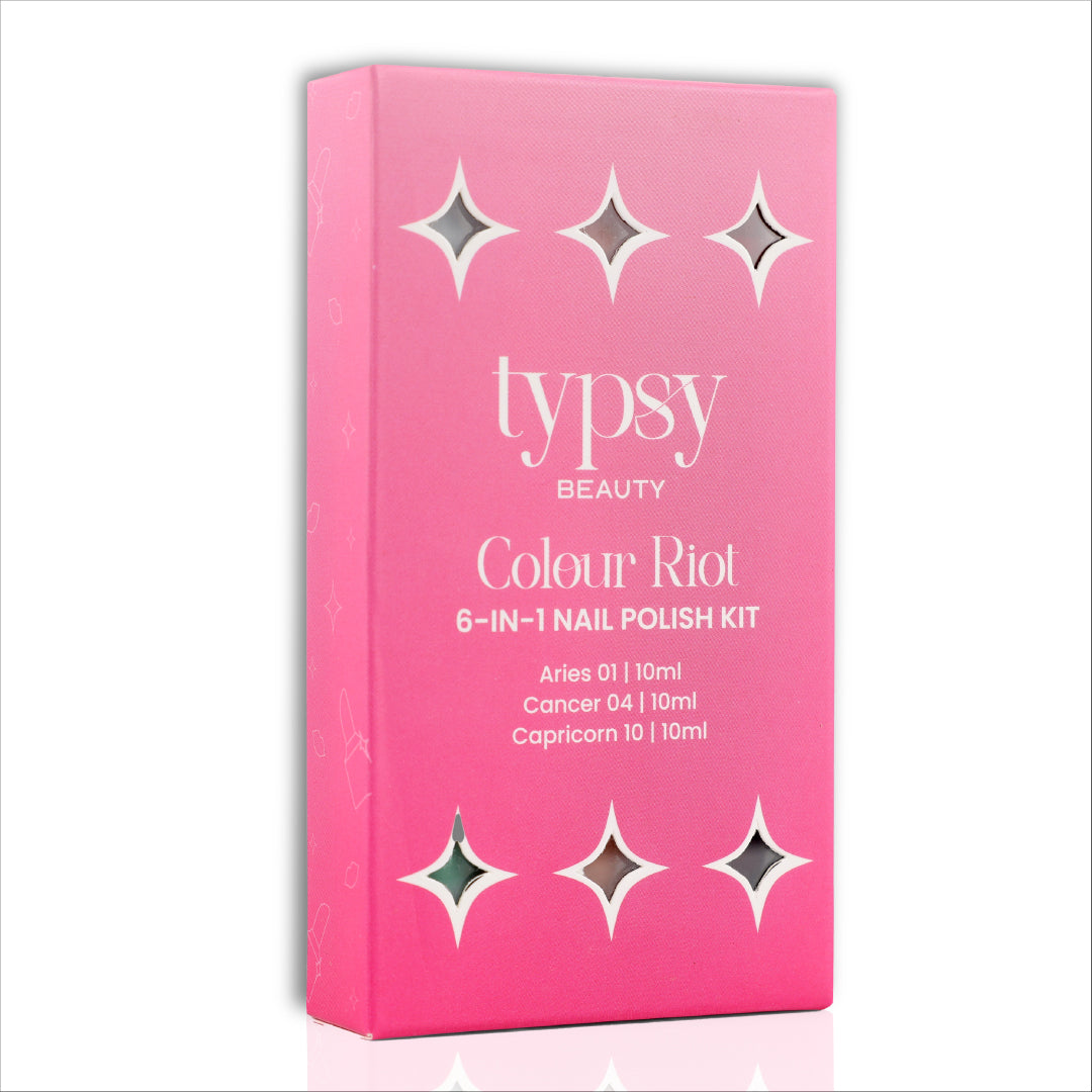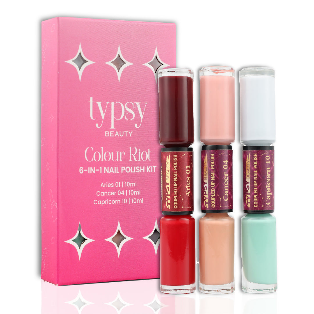 Indulge in a riot of vibrant colours with this set of Typsy Beauty Coupled Up Nail Polishes. Each Nailpolish has a unique double-sided design that allows you to play with more colours. Mix and match your nailpolish with this unique 6-in-1 nail polish set.