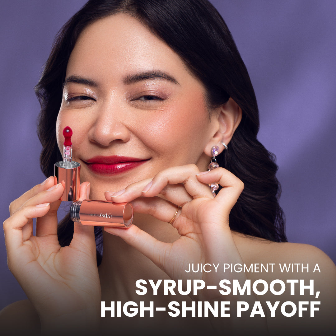 - Juicy tint with syrupy shine: Glides on like gloss, wears like tint, and leaves a luscious, lip-hugging finish.