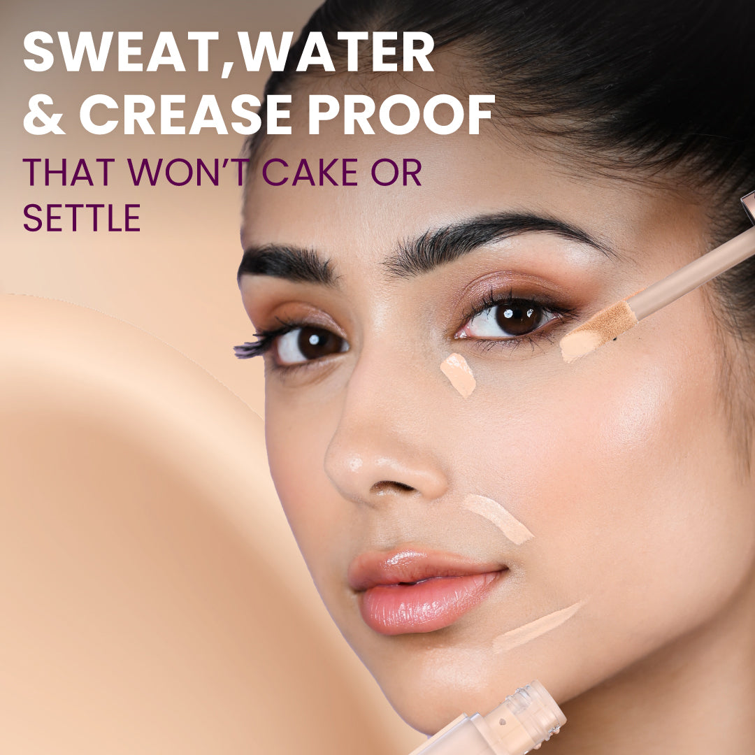 This full coverage concealer boasts a long-wear, sweat, and crease-proof formula that provides light-as-air, full coverage. It masterfully hides under-eye circles, acne scars, blemishes, fine lines, pores, and wrinkles, while also reducing redness. Enriched with Shea butter, it ensures your look remains flawless all day, without creasing or settling into fine lines or pores. This concealer stands as your resilient beauty ally, promising to keep your appearance impeccable, no matter how the night went.