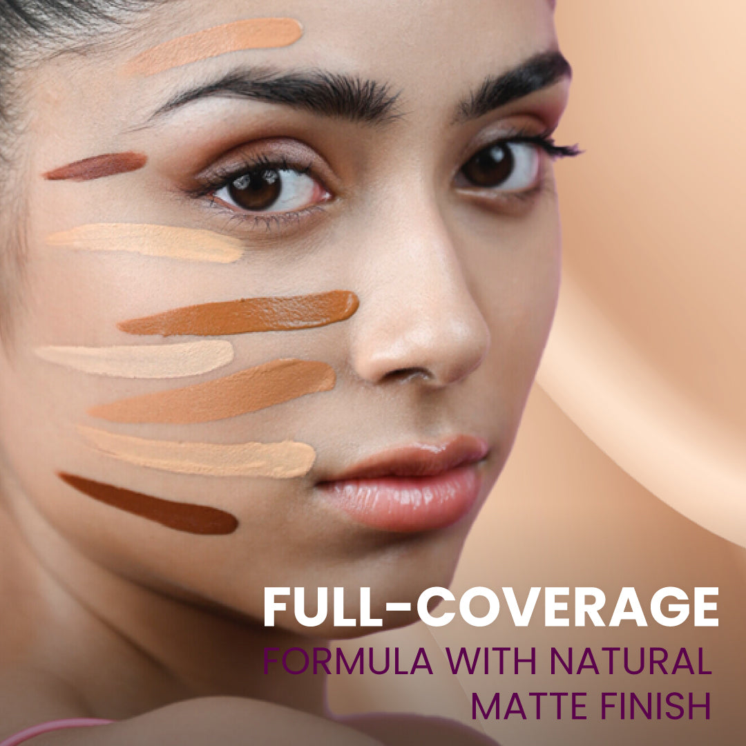 • Full-coverage formula with natural matte finish