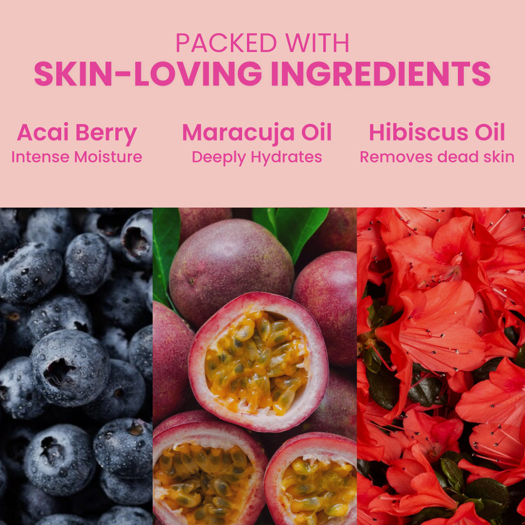 - Rich in nutrients: A luxurious blend of Acai Berry, Maracuja Oil, & Hibiscus oil that hydrates, comforts, and shields