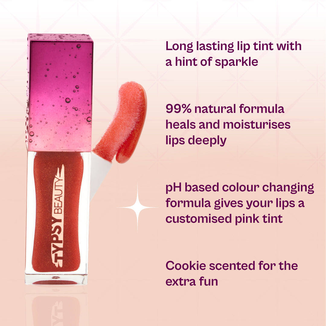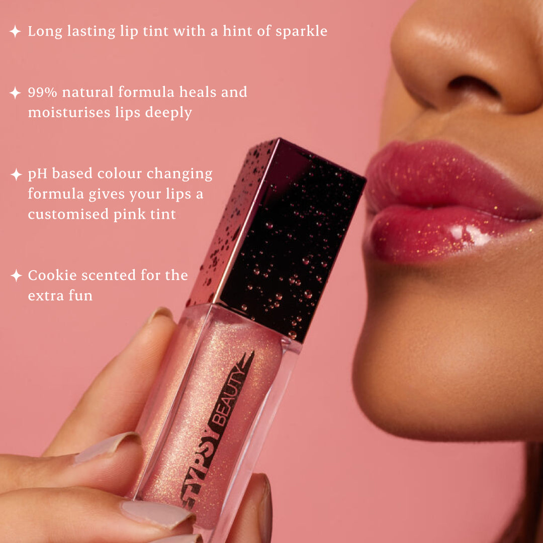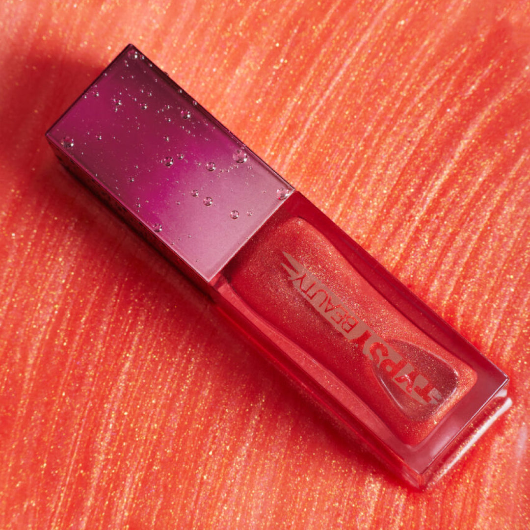 Irresistible, sun-kissed coral lip oil with golden glitterHOW TO USE