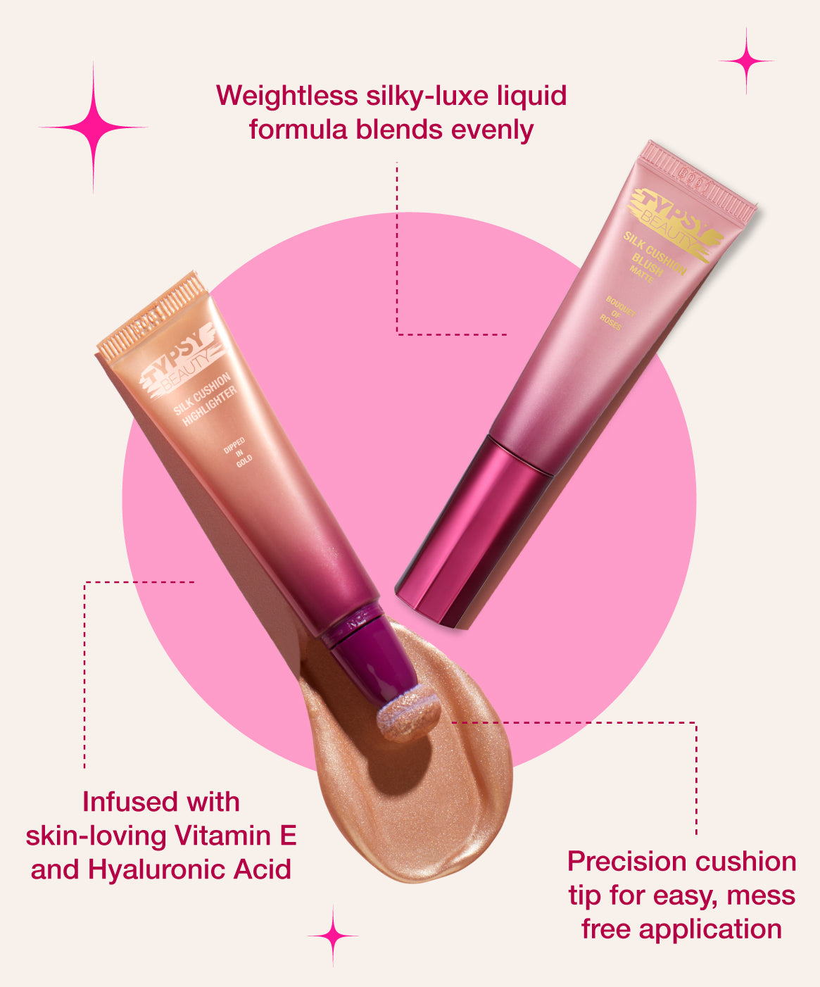 Highlighter: Highlighter: Discover the pearl-infused highlighter wands and unlock the secret to a luminous, soft-focus radiance. The collection includes two glow-giving highlighters: Dipped in Gold and Diamond Fizz