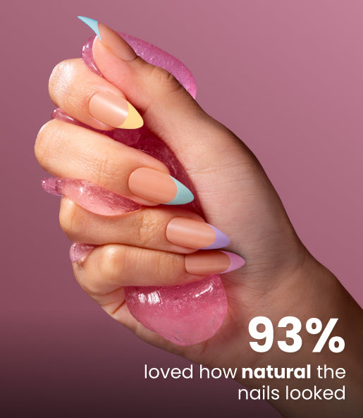 - Press firmly onto your natural nail for 10–15 seconds.