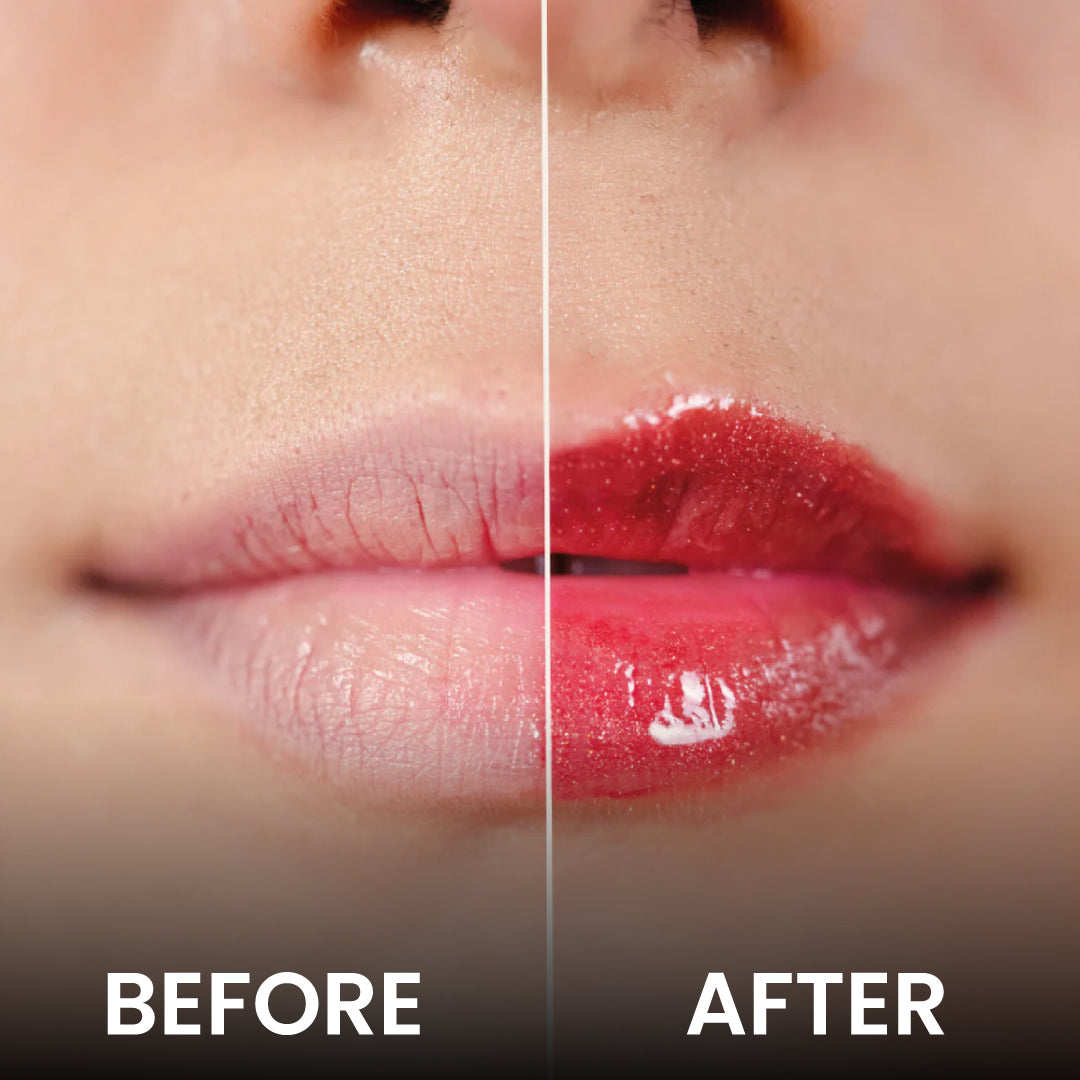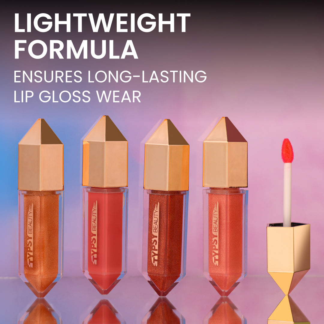 A radiant gloss shade that combines a clear base with champagne gold shimmers. The clear base creates a transparent effect that allows the skin tone to show through, while the gold shimmers provide a beautiful, sparkling effect that gives warmth. This shade is perfect as a lip topper or for that no-makeup makeup look.