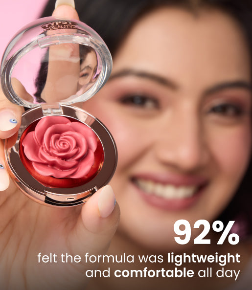 Stop and smell the roses with Enchanted Garden, India's first 3D makeup product, a rose-shaped cream blush that will elevate your beauty routine. Infused with Carnauba and Vitamin E, this buttery blush blends seamlessly onto your skin, giving you a natural-looking, flushed pop of color on your cheeks. Available in beautiful shade of nude pink blush, this cream formula provides buildable color that lasts all day. Unlike real flowers, our rose is truly eternal and will not melt or lose shape. You can apply this forever rose blush using a brush or your fingers for a flawless finish.